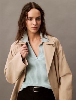 Smooth Cotton Rib Sweater Polo Shirt, Blue Haze